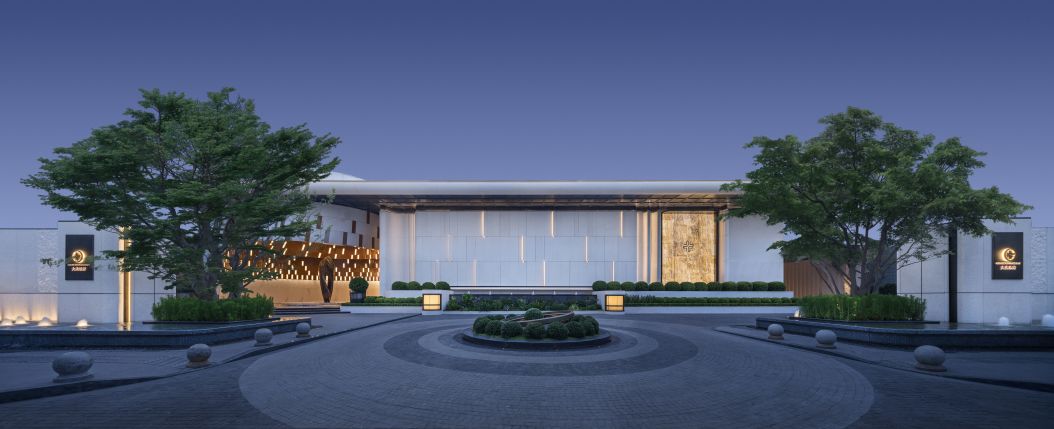 The gate is made of Beijin beige stone and stainless steel material, with a width of about 57 meters and a height of 10.8 meters, presenting a grand scale of theater level. The design inspiration for the sidewalk comes from the auspicious bell shape of Guiyuan Temple. Through a 360 ° surround layout and exquisite light and shadow processing, it creates a noble and majestic homecoming ceremony.