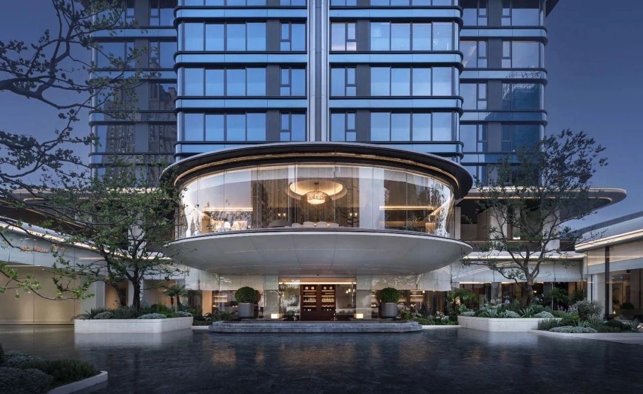 The entrance of the high-rise building is constructed with 26 meter wide curved aluminum panels and panoramic glass, forming a "hall level" entrance space. The exterior adopts a 270 ° curved window and curtain wall system, combining elegant design with high spatial efficiency.
