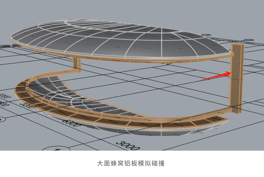 For the hyperbolic honeycomb aluminum plate with a maximum size of 2000 × 4000mm, the project team effectively avoided installation conflicts between the curved elements and the closing parts through pre construction modeling and collision simulation.