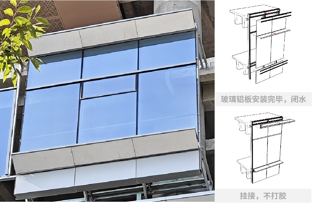 The system eliminates the use of sealant, thereby eliminating the risks of dirt accumulation in glue joints and oil leakage from inferior sealant, significantly enhancing the long-term aesthetics and maintenance convenience of the facade.