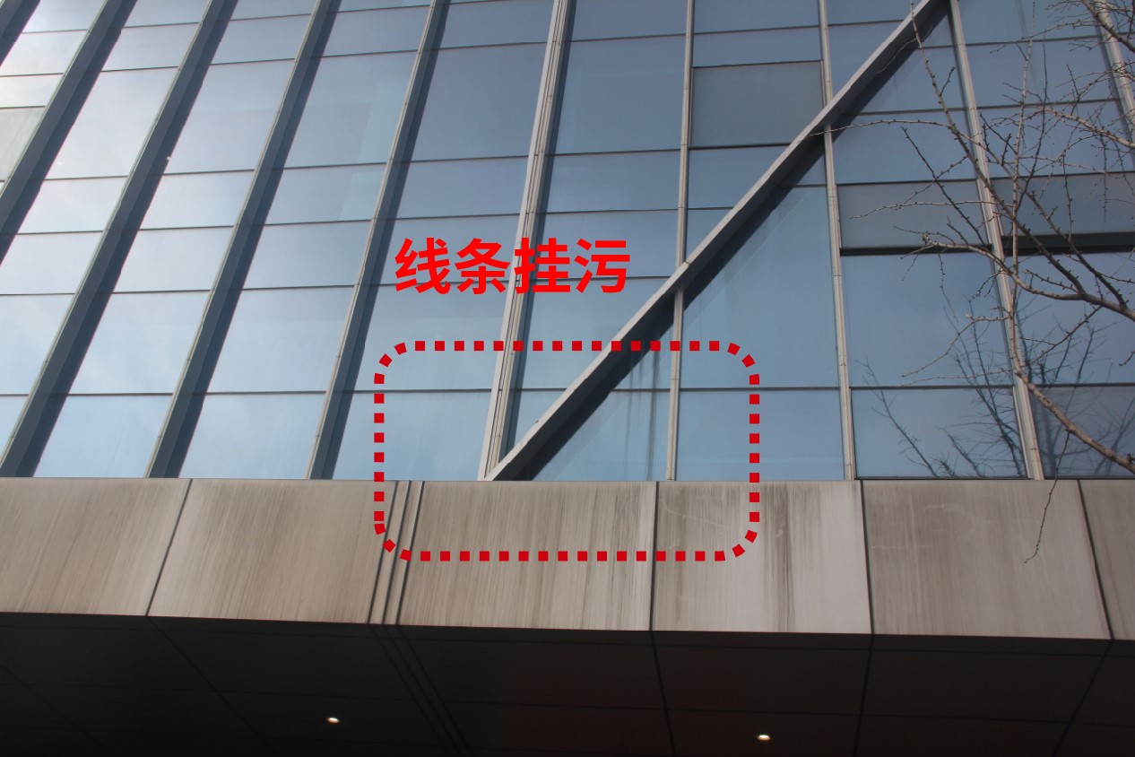 Line smudging - "external tear marks": Rainwater carries dust on the glass surface, accumulating on the slanted surfaces of the lines, forming streaks of "tear marks" that are difficult to clean, resembling dirty tear marks on a pristine facade.
