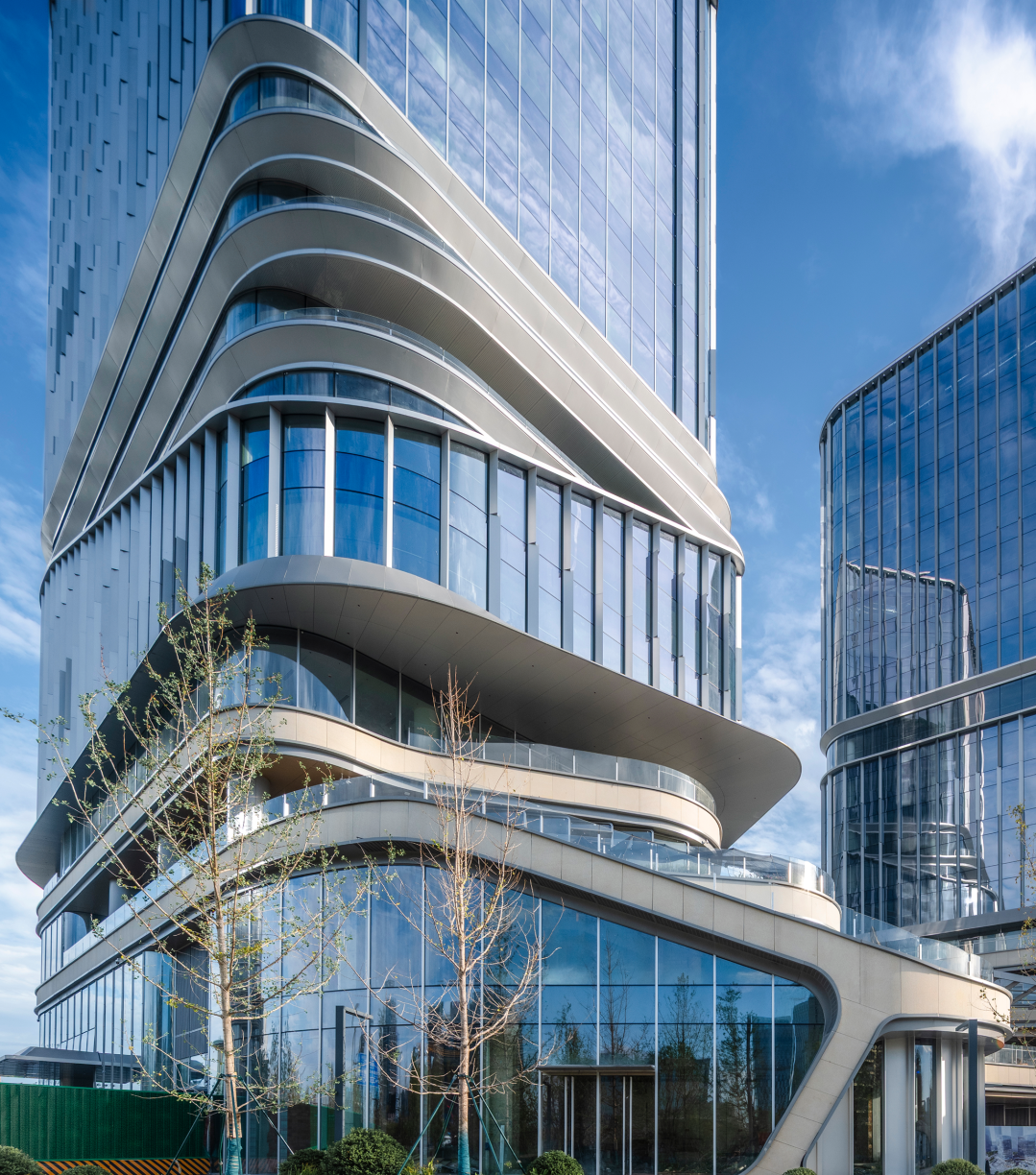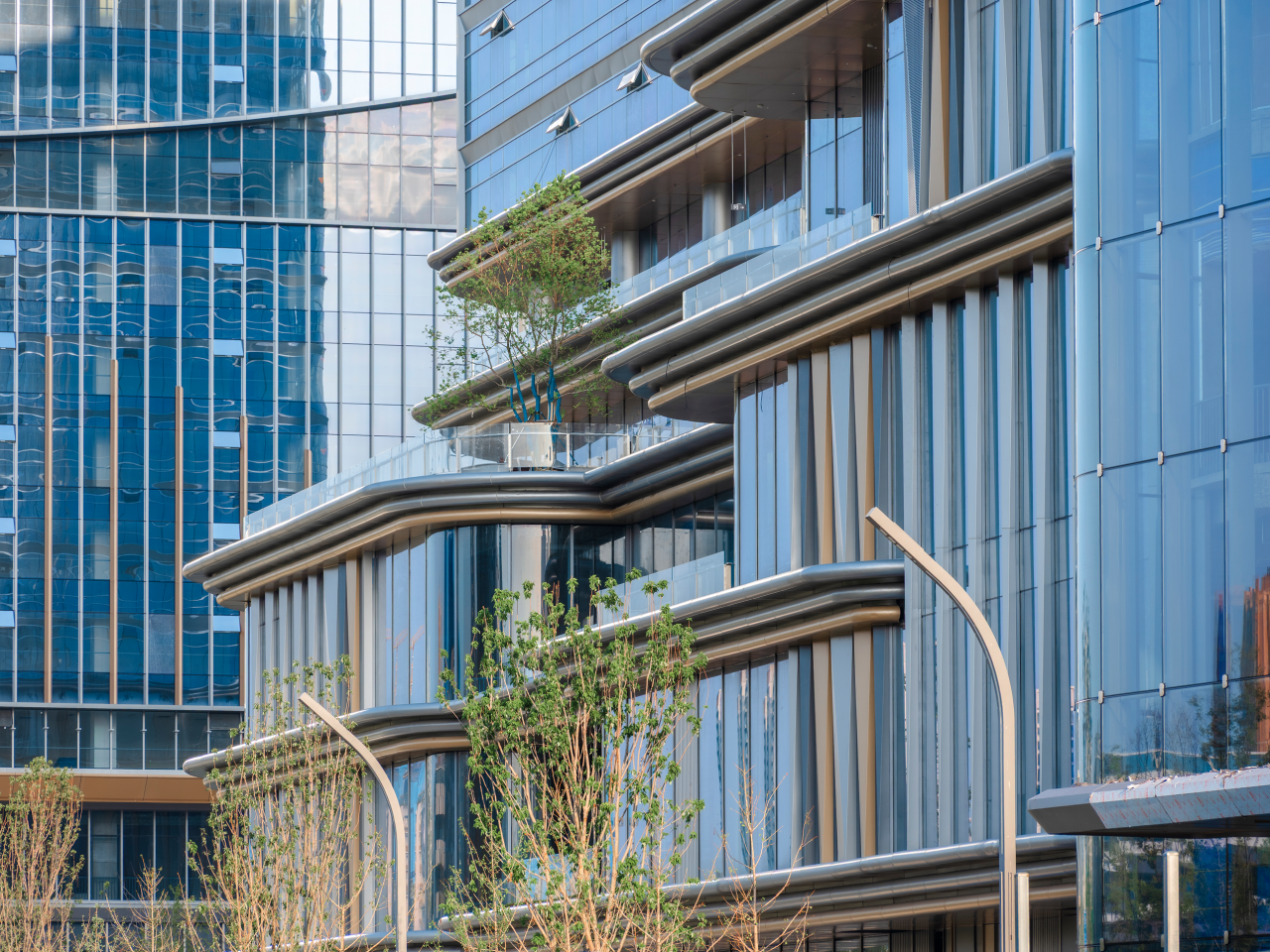 The project deeply integrates the concept of park city, and is designed and built in strict accordance with the three-star green building standard and LEED platinum pre-certification requirements. With a total curtain wall area of approximately 185,000 square meters, it integrates six office towers and a commercial podium, serving not only as an important carrier for empowering Chengdu's financial industry to build a strong circle and chain, but also as a park city model for implementing the "dual carbon" strategy and creating new urban landmarks.