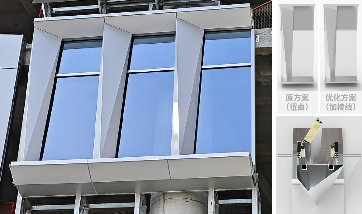 For the design featuring stacked stone-like aluminum panels, the team optimized the originally designed hyperbolic twisted panels, which were challenging and costly to process, into flat polygonal panels. This significant change not only preserved the three-dimensional visual effect but also significantly reduced the processing and construction costs.
