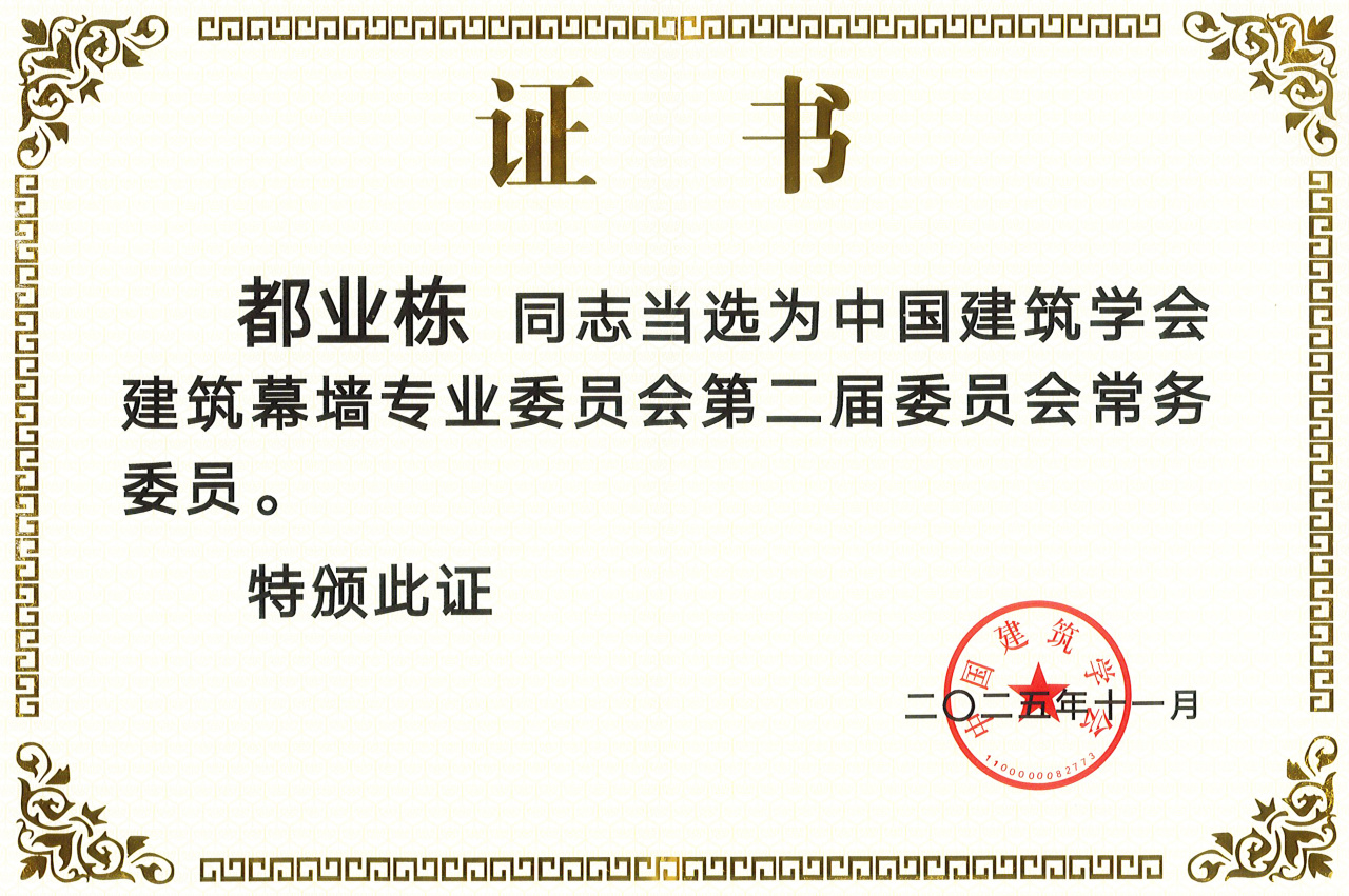 同期举行的中国建筑学会建筑幕墙专业委员会换届会议上,弗思特总裁都业栋当选为中国建筑学会建筑幕墙专业委员会第二届委员会常务委员。这不仅是对弗思特多年来深耕幕墙领域的专业认可,更是一份沉甸甸的责任,弗思特将持续以创新技术为引,为中国建筑幕墙的高质量发展注入新动能。