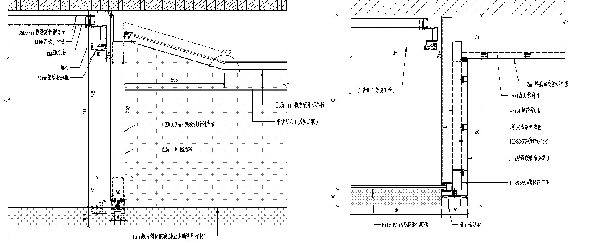 广告位、LED、雨棚等型材线条压边,收边挺直、分缝少,遮挡铝板胶缝