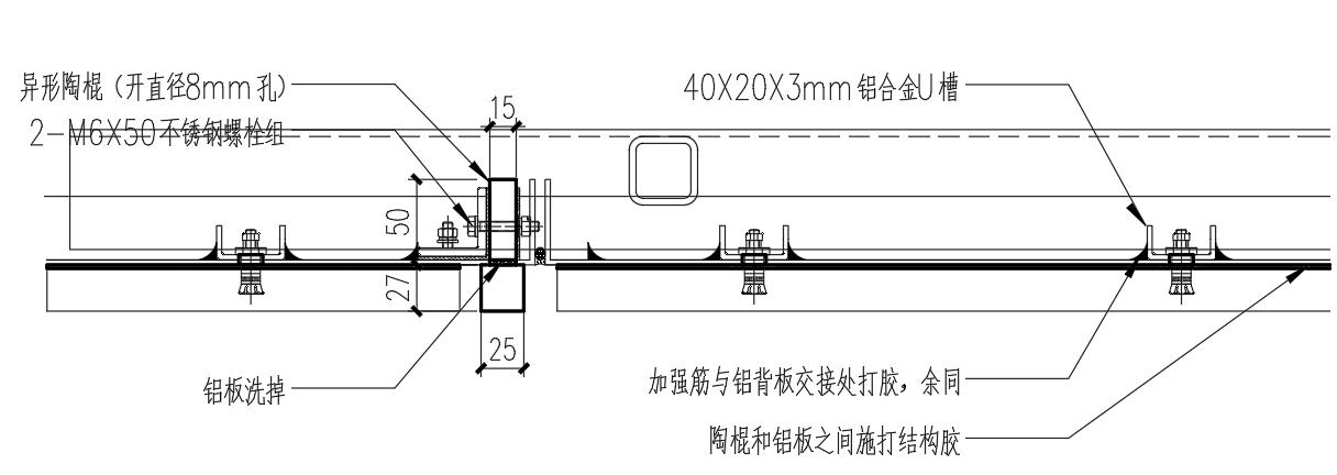 在方案实施阶段,所有组合面板均在工厂背栓锚固,同时,在陶棍背面加结构胶,二次防止破碎掉落即使发生意外破损,也能有效防止碎片脱落,显著提升系统安全性。