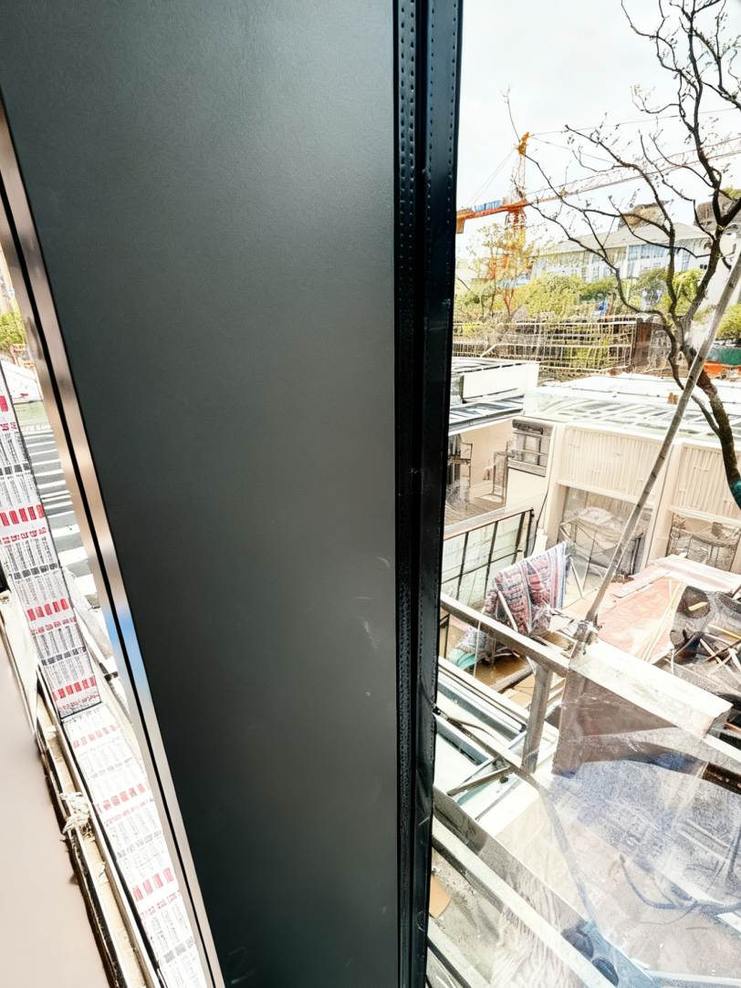 在方案落地阶段,我们联合旭格系统窗技术团队,基于这一理念重新开发了七套定制模具,覆盖项目中所有玻璃配置需求。每套模具均经过多轮打样与现场试装验证,最终不仅实现了“严丝合缝”的极简立面效果,也完整保留了也保障了幕墙系统的性能与施工可行性。
