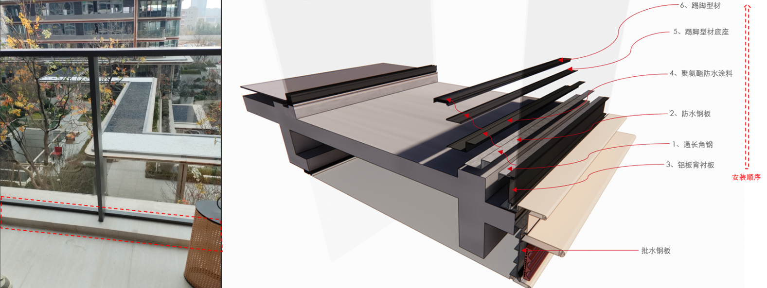 关键部位强化:在层间部位设置内道批水钢板;在露台栏板根部,采用“三道防水+披水钢板”的复合构造,彻底阻断渗水路径。