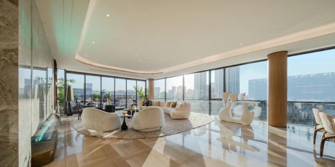 长安玉华以“以轻盈诠释厚重”为设计哲学,将“玉”的温润与坚韧,全方位转化为可感知的空间体验: