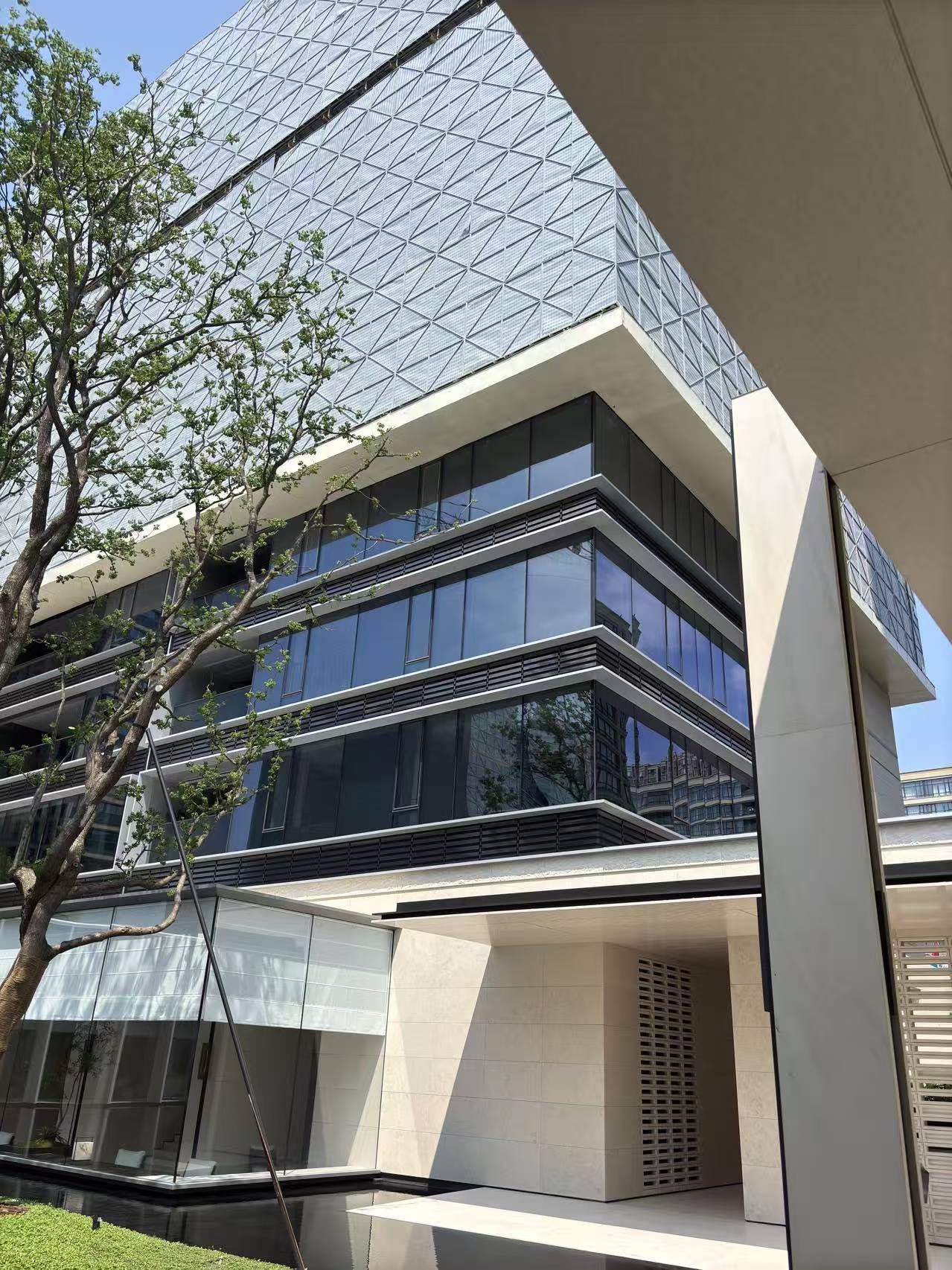 During the implementation phase of the project, we collaborated with the Schueco system window technology team to redevelop seven sets of customized molds based on this concept, covering all glass configuration requirements in the project. Each set of molds underwent multiple rounds of sampling and on-site trial assembly verification, ultimately achieving a seamless and minimalist facade effect while fully preserving and ensuring the performance and construction feasibility of the curtain wall system.