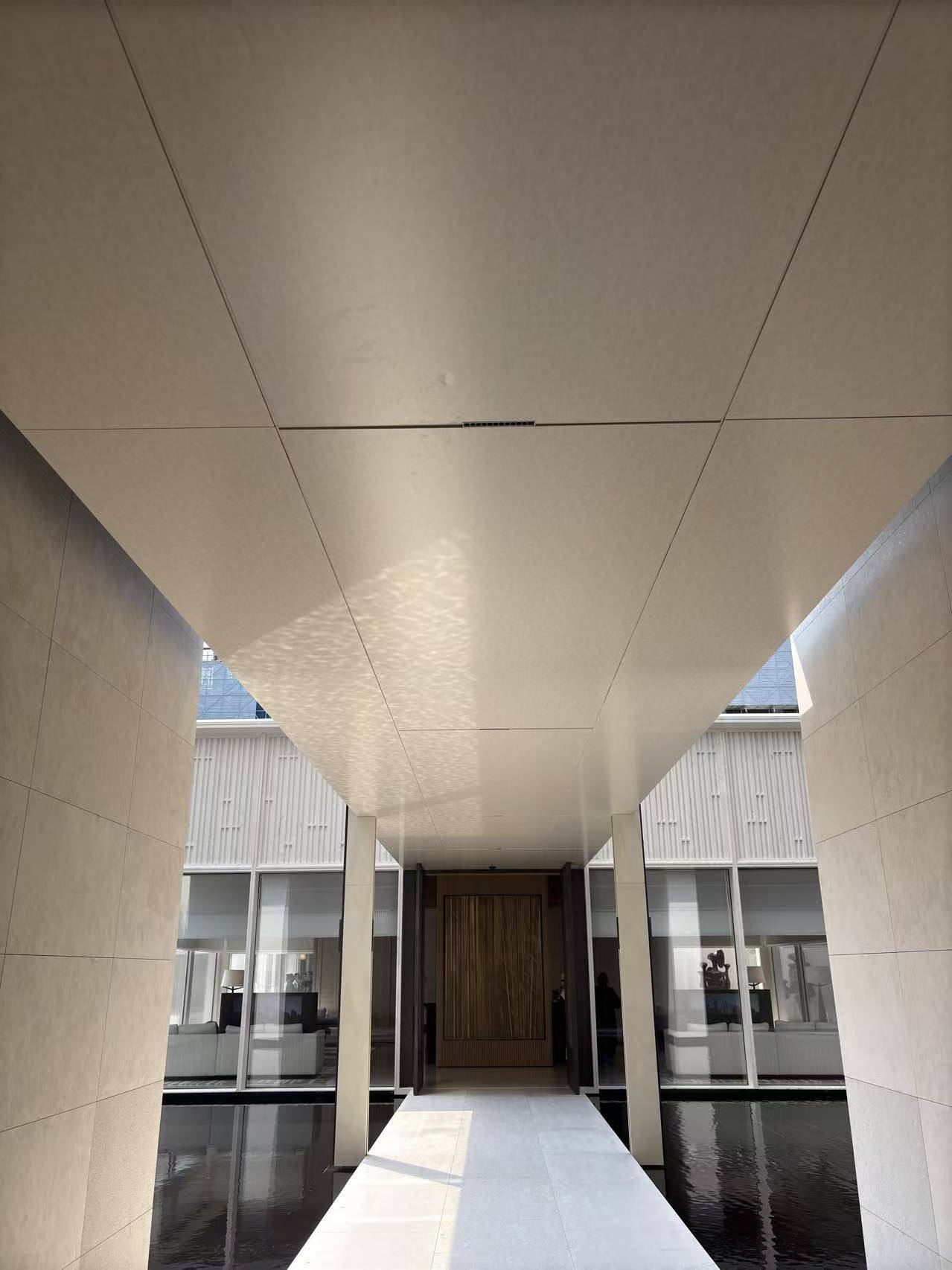 The project integrates eleven types of curtain wall systems, encompassing diverse categories such as aluminum panel curtain walls, stone curtain walls, honeycomb aluminum panels, T-bar glass curtain walls, full glass systems, interlayer ceramic plates, and glass window wall systems. Through precise material proportioning and technological innovation, it creates a rich facade hierarchy.