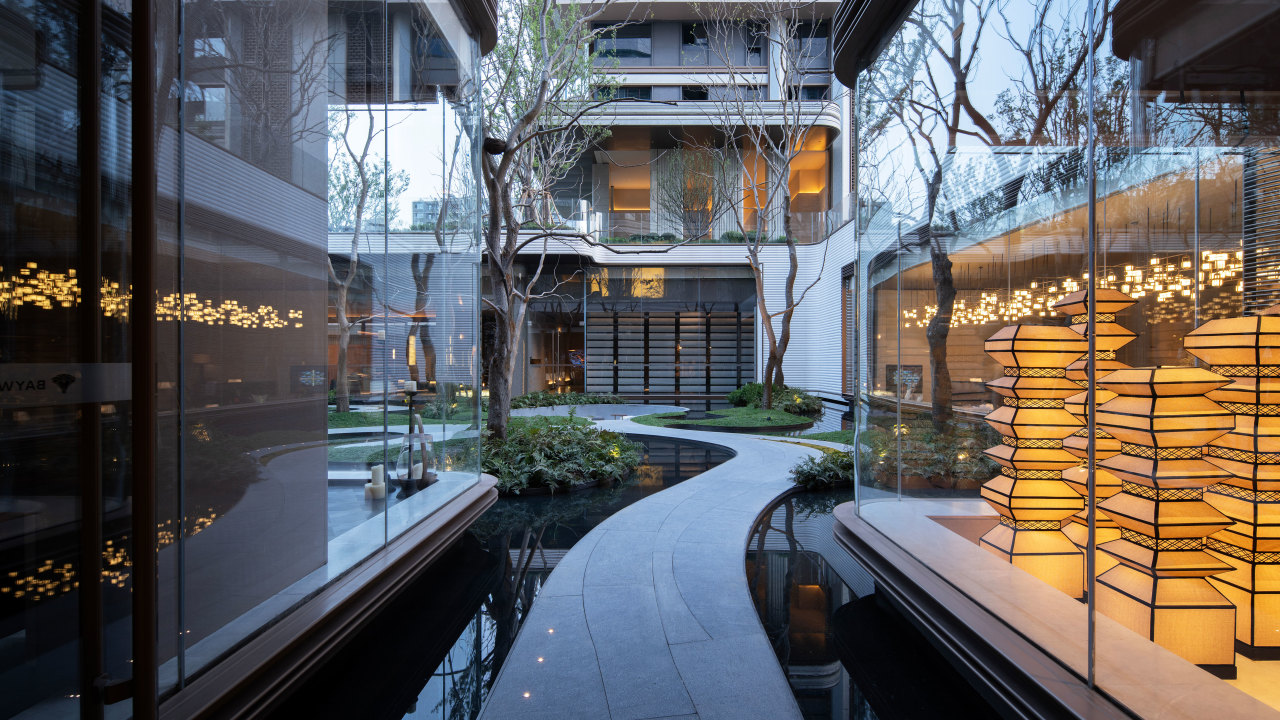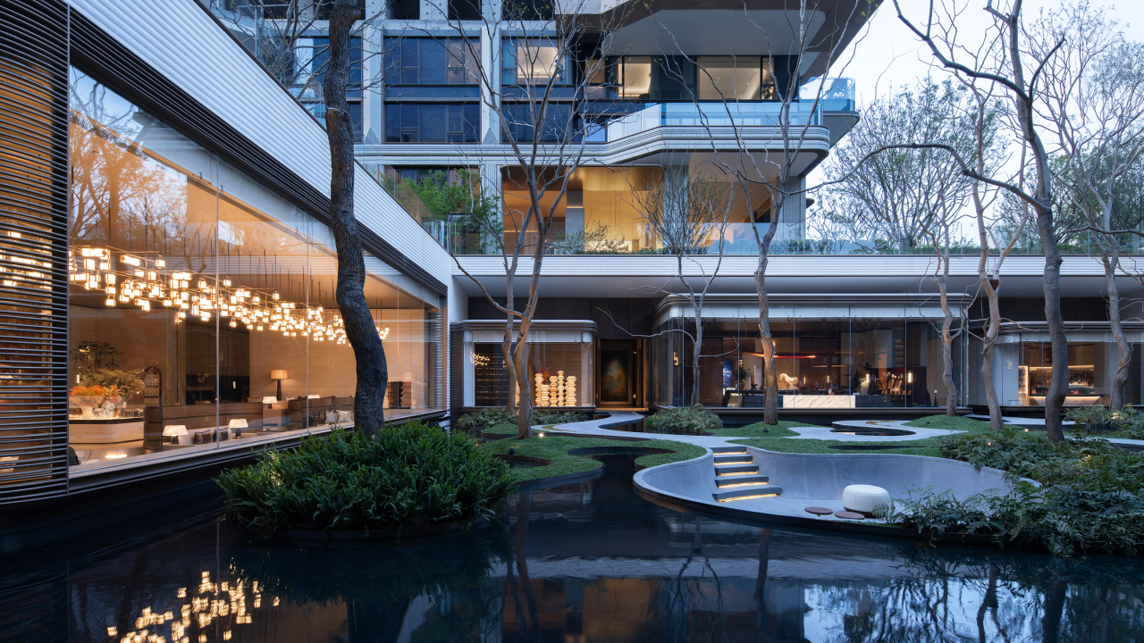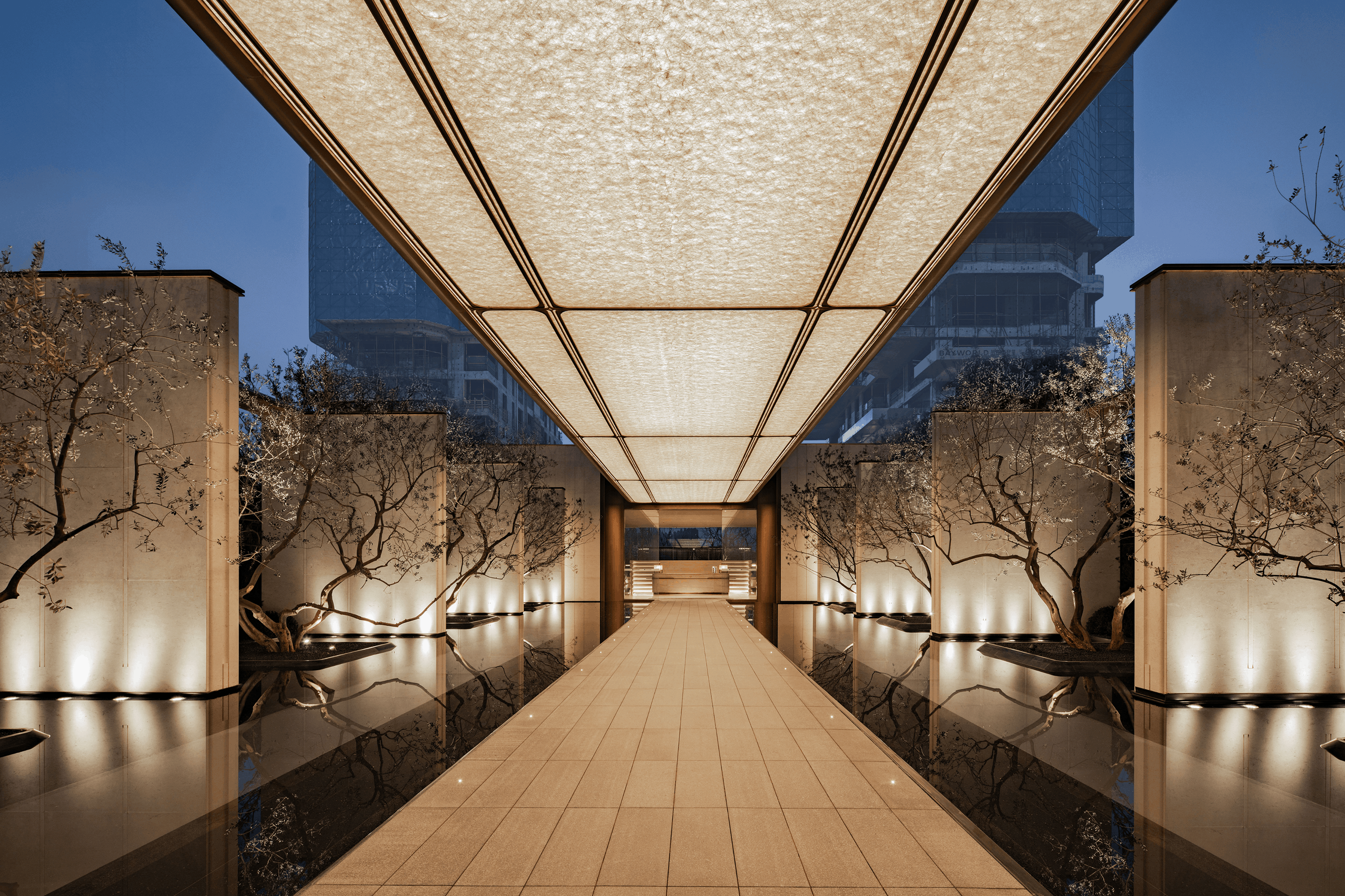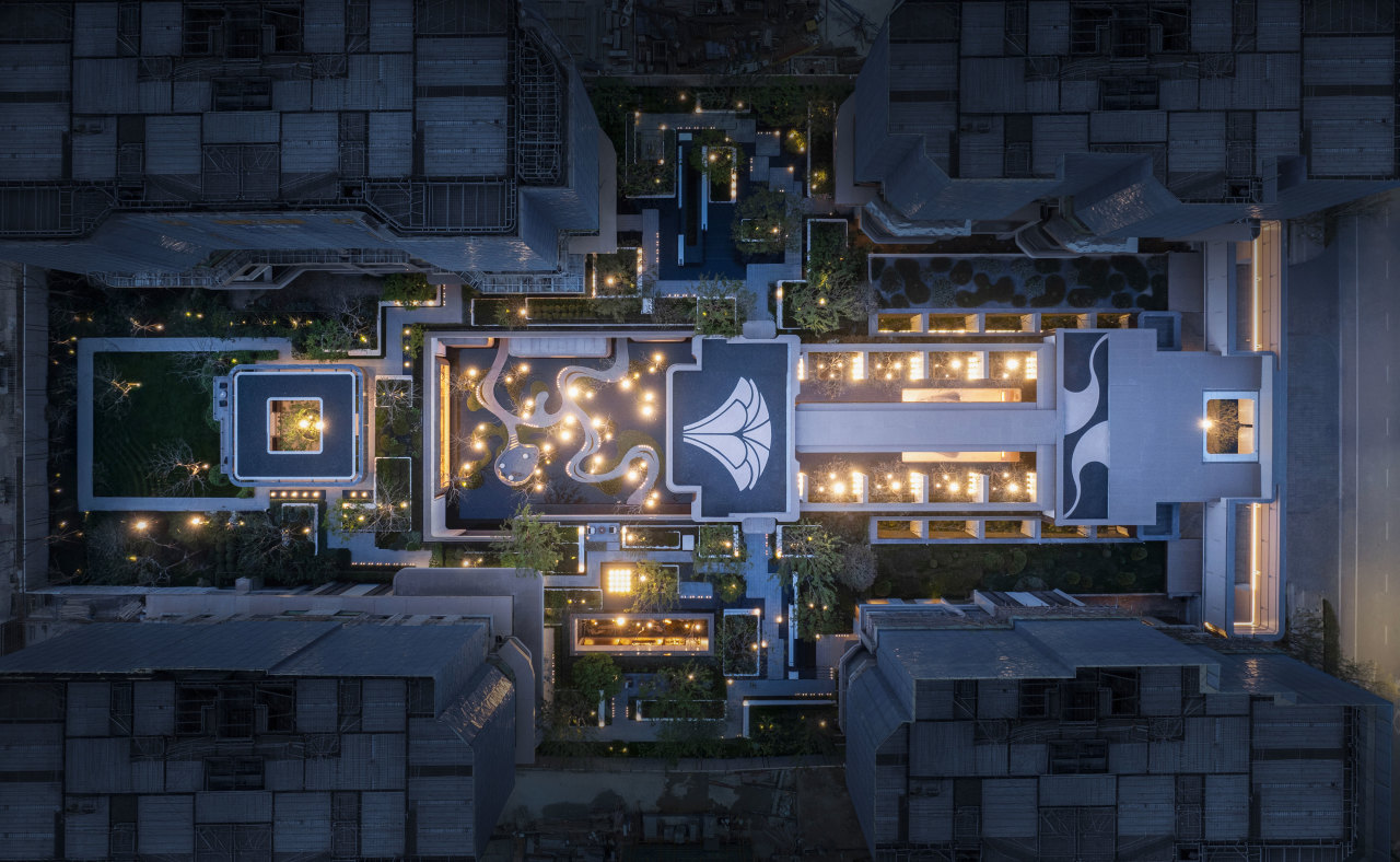 The water courtyard lighting follows the landscape architecture and is repeatedly carved to create a natural dialogue between light, water, and plants. By precise brightness ratio and blurring the boundaries between the ground and underground, the water courtyard in the night is cast with a hazy reflection, creating a serene and profound spatial rhythm.